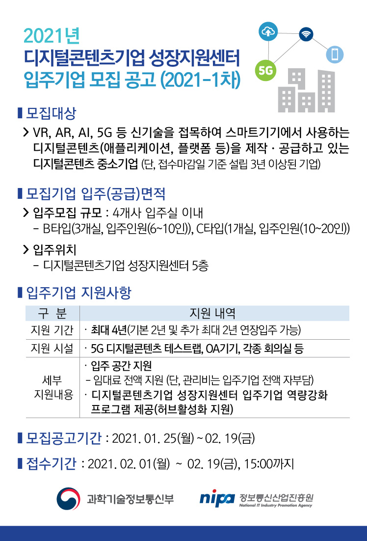 - 국내 우수 디지털콘텐츠 중소기업 지원확대 위해 2월 19일까지 신규 입주기업 모집