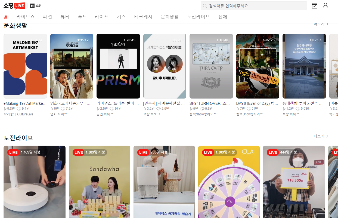 라이브커머스 서비스 플랫폼 대표 사례 중 네이버의 경우 “네이버 쇼핑라이브”라는 콘텐츠로 라이브커머스 서비스를 제공하고 있습니다. 네이버 쇼핑라이브의 경우, 다양한 판매자들이 사용하고 있으며 특히 중소상공인 판매자 비율이 높은 라이브커머스 서비스 중 하나입니다. 네이버는 자사 동영상 라이브 기술 접목으로 간단한 스마트 기기 활용 참여가 가능한 환경부터 초저지연 재생 기술 등 다양한 기술 투자를 진행하였습니다.