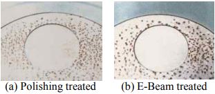 고밀도 전자빔을 이용한 표면처리 결과, 소재의 내부식성과 발수성 등이 향상되는 기술이다. 위 사진은 폴리싱 된 시료의 고밀도 전자빔 조사 전후 염수분무 시험과 발수성 시험 결과를 보여준다. 내부식성과 발수성 시험 결과, 전자빔 조사 전후의 내부식성 및 발수성이 향상되는 것을 알 수 있다.