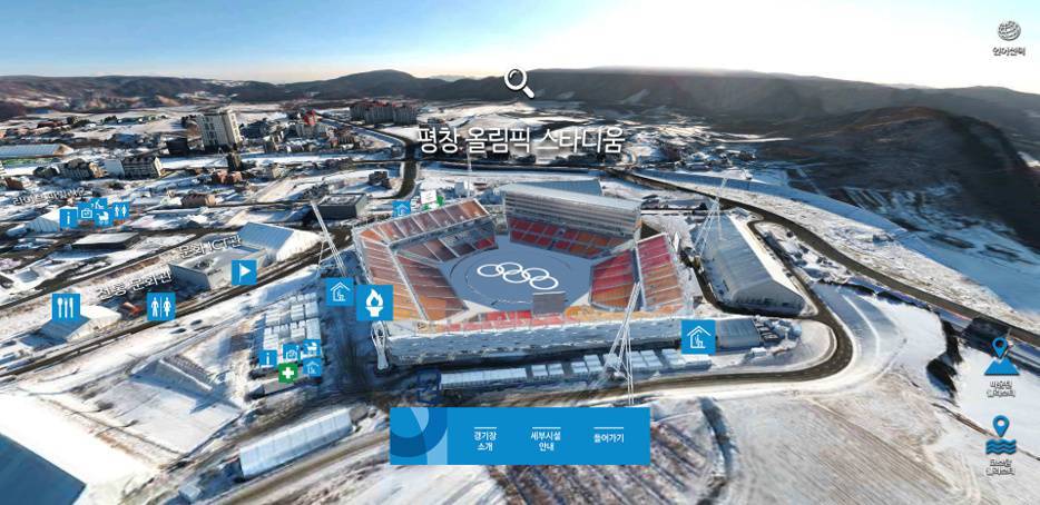 박 대표: 2018 평창올림픽 경기장의 ‘3D Preview’ 서비스다. 평창올림픽 14개 경기장을 드론으로 촬영한 뒤, 3D 실감 콘텐츠로 변환해 공식 웹사이트에서 서비스했다. 또한, SK 와이번스의 문학 경기장(현 인천 SSG 랜더스필드), 부산 오륙도, 덕수궁, 서산 해미읍성 등 다양한 현장과 시설, 문화재를 Web 3D 실감 콘텐츠로 제공한 바 있다.