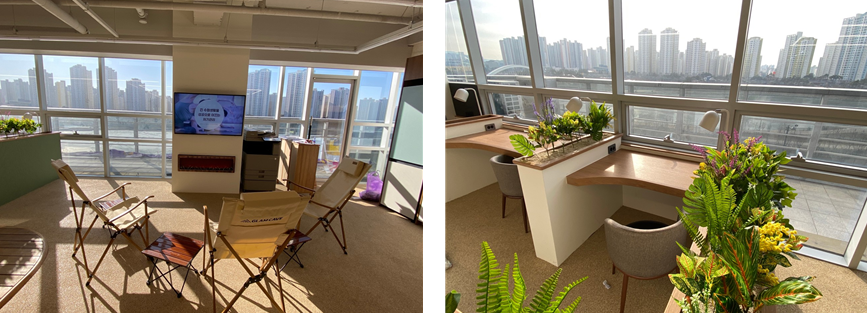 해브잇 스터디스페이스는 첨단 IT설비를 통해 쾌적한 학습 공간을 마련했습니다. 학습 공간은 개인 PC와 모션데스크를 구비한 전석 1인실로 운영됩니다. 또한 라운지 자유석을 마련하여 편안한 학습 분위기를 느낄 수 있습니다.