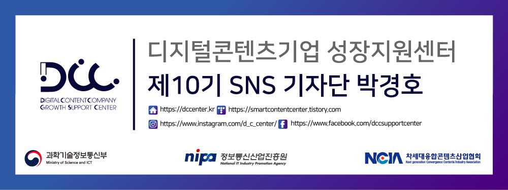 안녕하세요. 디지털 콘텐츠기업 성장지원센터 SNS 기자단(이하 SNS기자단)입니다. 디지털콘텐츠기업 성장지원센터에는 창의적인 아이디어와 기술력으로 글로벌 무대에 도전하는 많은 기업들이 입주해 활발히 활동하고 있습니다.