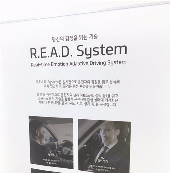 R.E,A.D시스텝은 실시간으로 읽은 운전자의 감정에 맞게 더욱 편안하고 즐거운 운전 환경을 만들어 줍니다. 차량은 인공지능 머신 러닝을 기반으로 가속과 감속, 진동, 소음 등 다양한 주행환경과 실내·외 환경 조건 속에서 운전자가 반응하는 생체 정보와 감정 상태를 학습합니다. 이를 통해 차량 내 카메라와 센서로 운전자의 감정 상태와 생체 정보를 실시간으로 추출한 뒤 상황에 맞는 음악과, 온도, 조명과 진동, 향기 등 최적화된 실내 환경을 제공하는 것입니다.