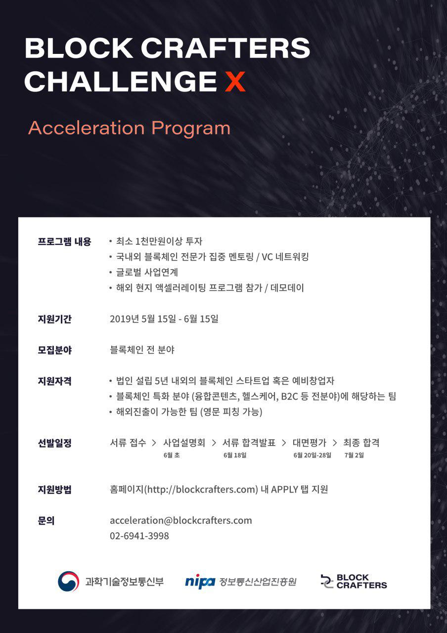 블록체인 스타트업 공모(2019 K-Global 액셀러레이터 - 블록크래프터스)