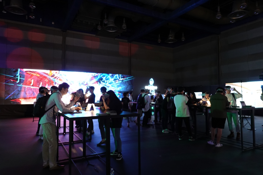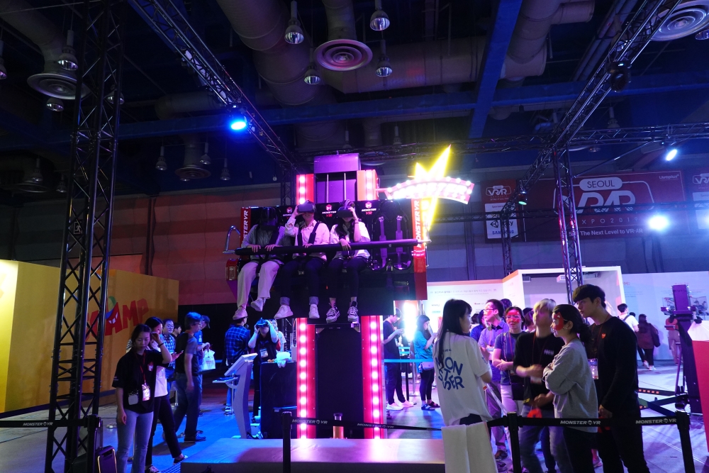 생뚱맞게 웬 거북선이 있을까요? 그저 모형으로 만든 거북선 위에 앉아있는 거처럼 보이지만, 가상현실 속은 거북선이 등장했던 임진왜란, 아마도 수군이 되어 활시위를 당기면 해상전투를 벌이고 있을 겁니다. 직접 경험을 해보고 싶었는데, 가장 인기가 높았던 부스라 아쉽게 구경만 했습니다.