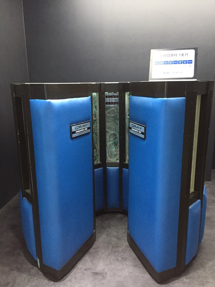 직접 슈퍼컴퓨터를 볼 수 있는 기회도 주어졌습니다. 1호 슈퍼컴퓨터의 모습은 다음과 같습니다. 1 호 컴퓨터의 모습과 KISTI 건물의 모습 어딘가 비슷하지 않나요? 실제로 KISTI 건물은 1호 슈퍼컴퓨터 CRAY-2S의 모습을 본떠 만들었다고 합니다. 1호의 총 용량은 4기가였다고 하니 컴퓨터가 얼마나 빠르게 발전하고 있는지 느껴지는 부분이었습니다.