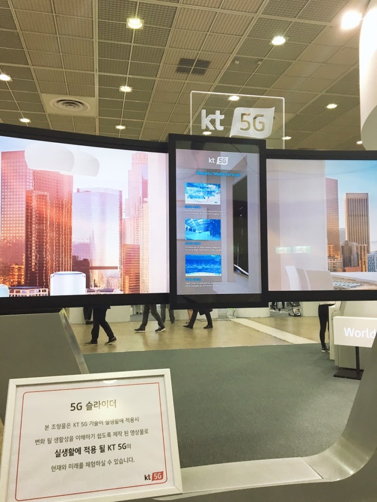 KT부스에는 초고속, 초저지연, 초연결성의 5G기술이 실생활에 적용될 때 어떻게 생활이 변화되는지 현재와 미래를 체험할 수 있는 다양한 전시품목들이 있었습니다.