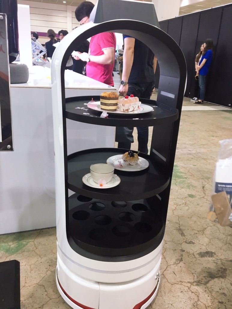 전시장에서 가장 눈에 띄었던 전시 품목은 음식을 나르는 딜리버리 로봇이었습니다. 로봇은 전시장 곳곳을 누비고 다녔습니다. AI로봇을 활용한 무인화 매장이 실현되고 있었는데요.