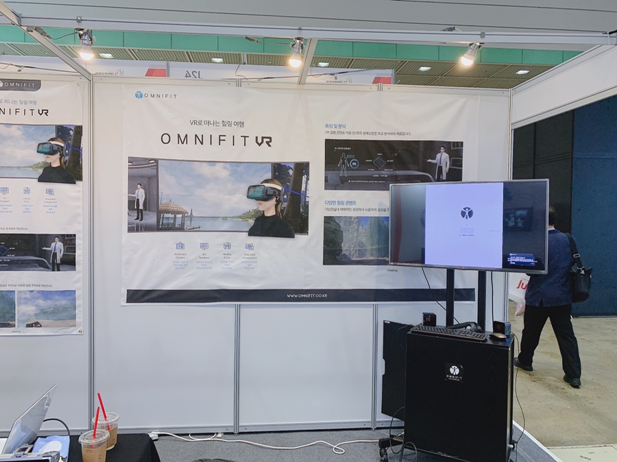 특히 옴니핏에서 제안한 VR로 떠나는 힐링여행 시스템이 눈에 띄었는데요! 옴니핏은 GS인증 1등급 및 IB인증을 받은 힐링 콘텐츠로 가상현실 기반의 다양한 힐링 콘텐츠를 제공하고 있습니다. 이 기술은 생체신호를 측정하여 객관저 바이오피드백을 제공하고 통합적인 관리를 위한 시스템을 제공한다고 하는데요.